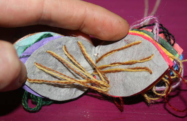 In questo caso, dopo aver rilegato il libretto facendo in modo che si apra sempre su due facciate dello stesso colore, si tratterà di cucire le vostre fantasie di fili colorati, fissando i fili con poca colla