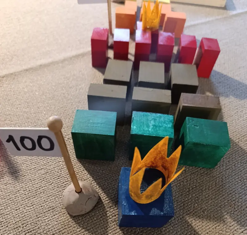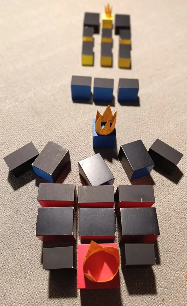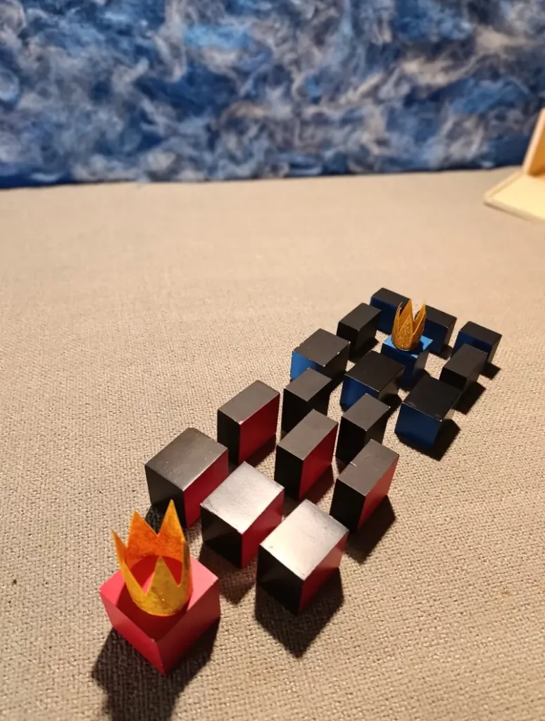 . 1 cubo rosso 4 x 4 x 4 cm, chiamato il “Primo Re Rosso”;