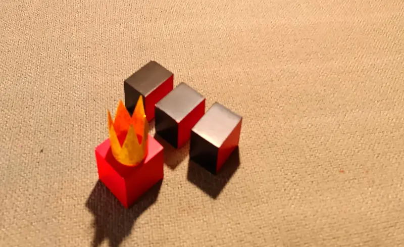 . 1 cubo rosso 3 x 3 x 3 cm, chiamato il “Nuovo Re Rosso”