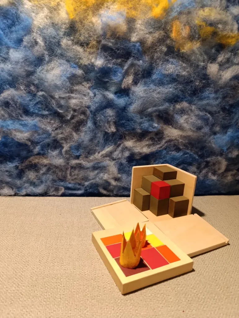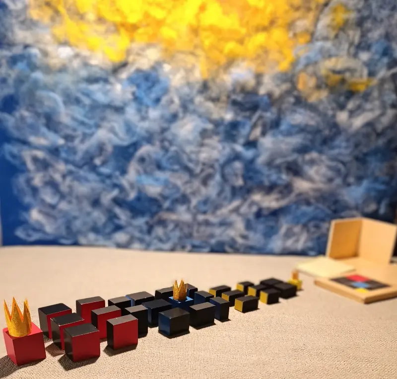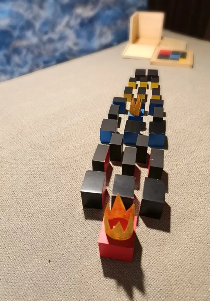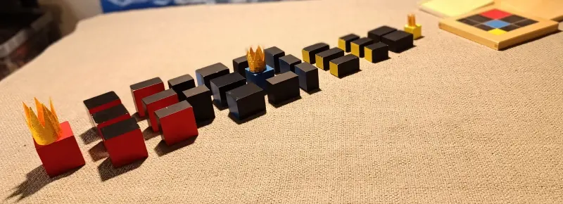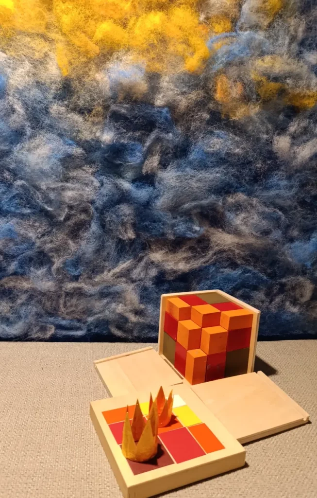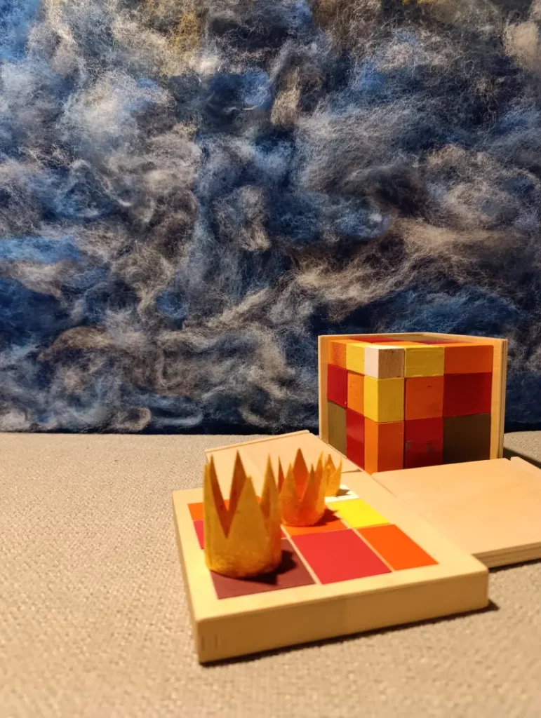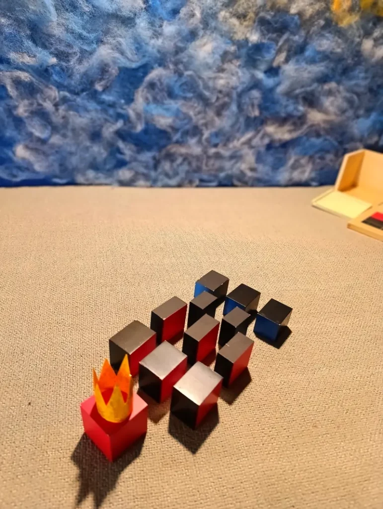 Questa storia è legata a due materiali Montessori molto specifici: il Cubo del Trinomio e il Cubo del Trinomio Gerarchico.