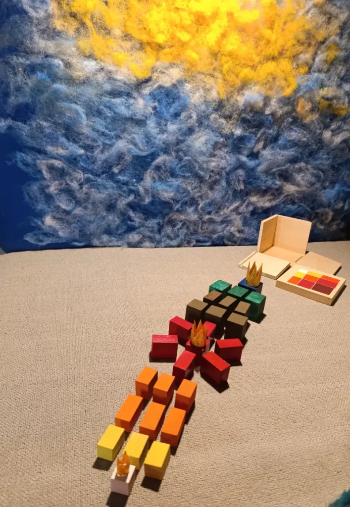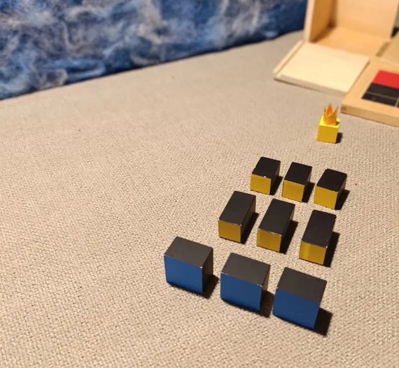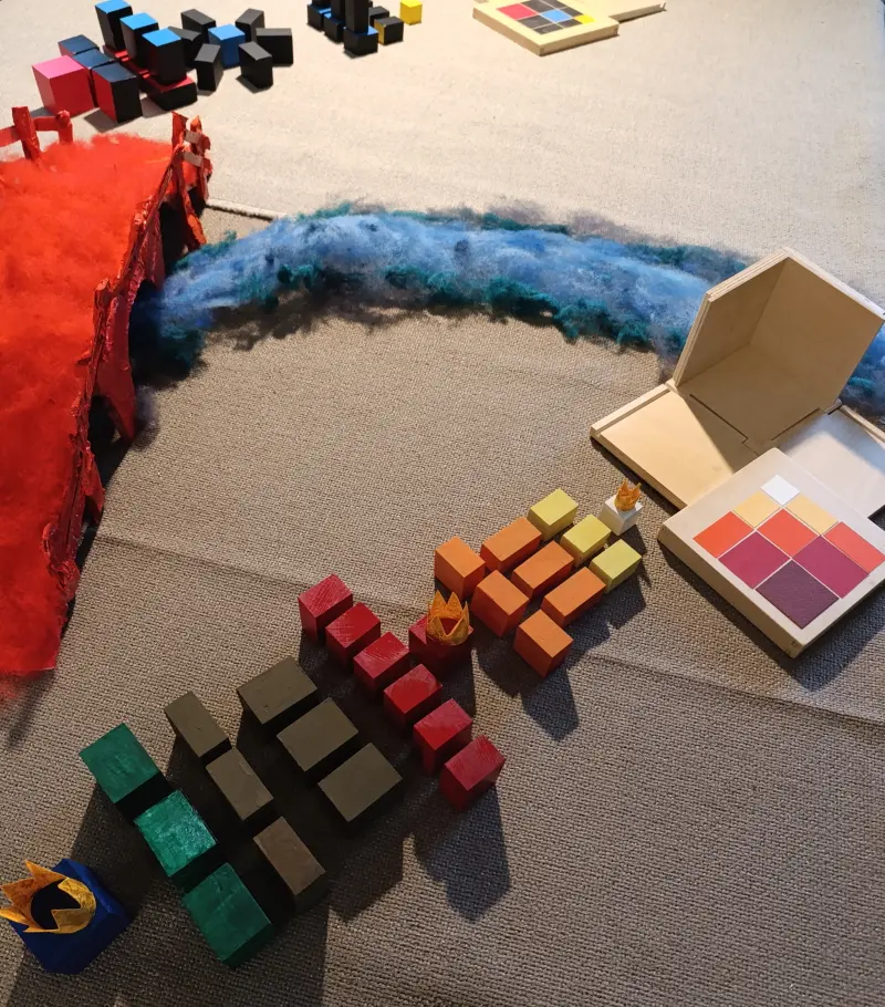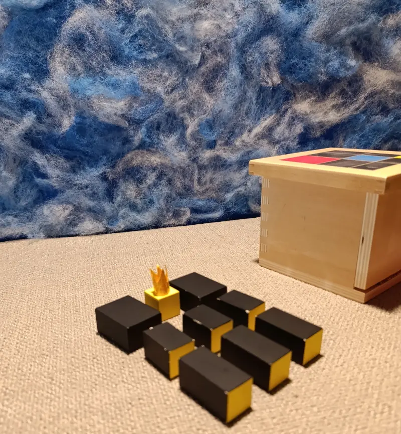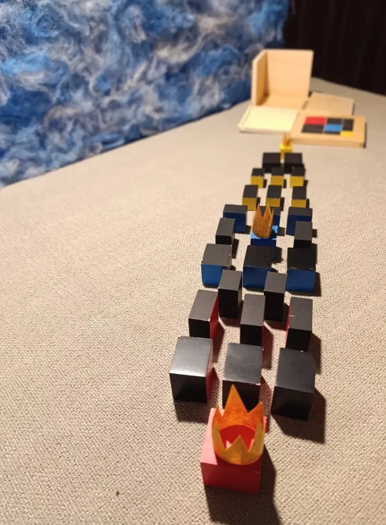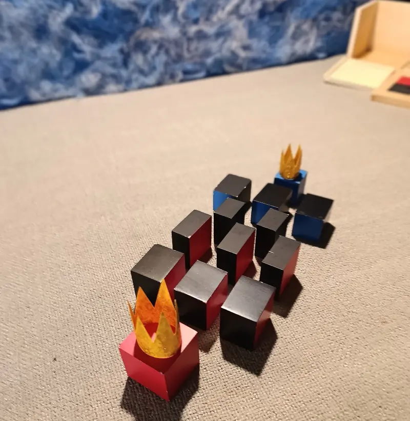 Questa storia è legata a due materiali Montessori molto specifici: il Cubo del Trinomio e il Cubo del Trinomio Gerarchico.