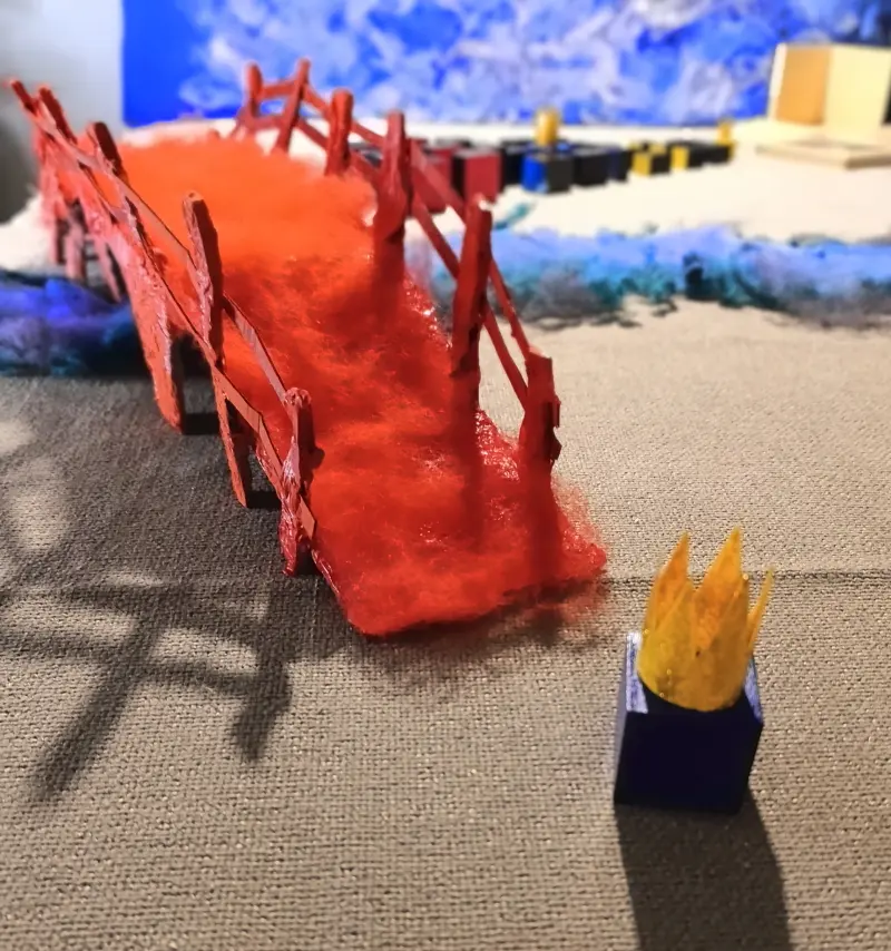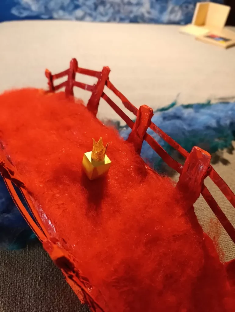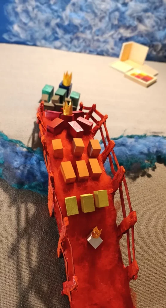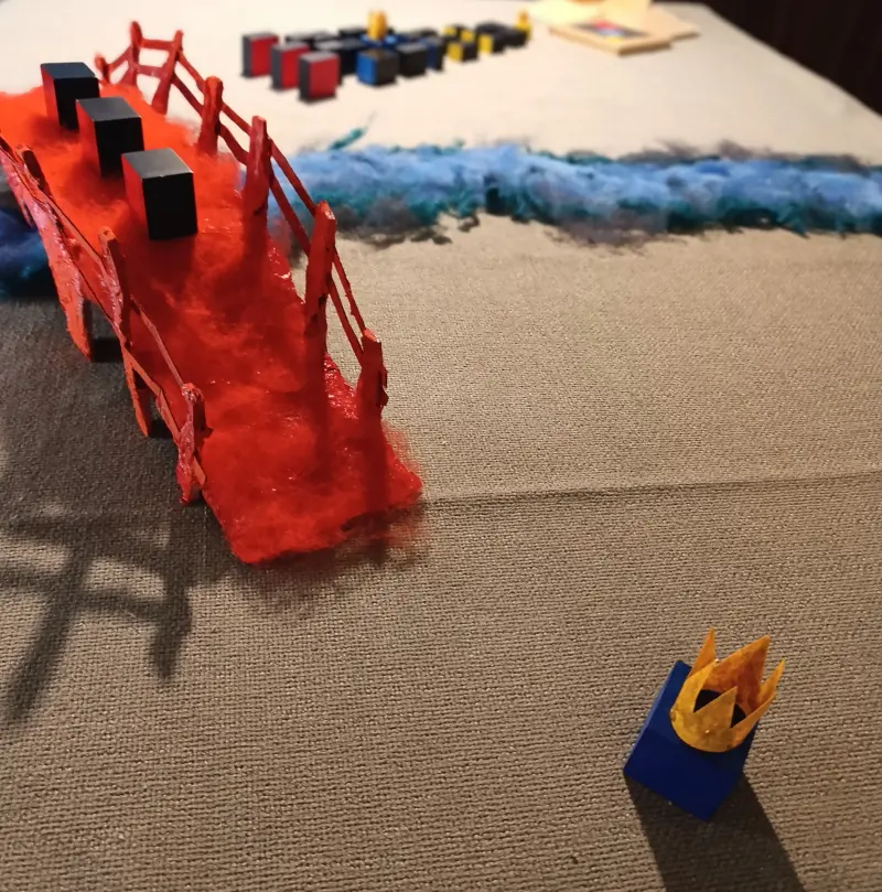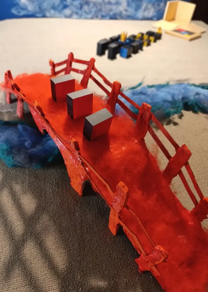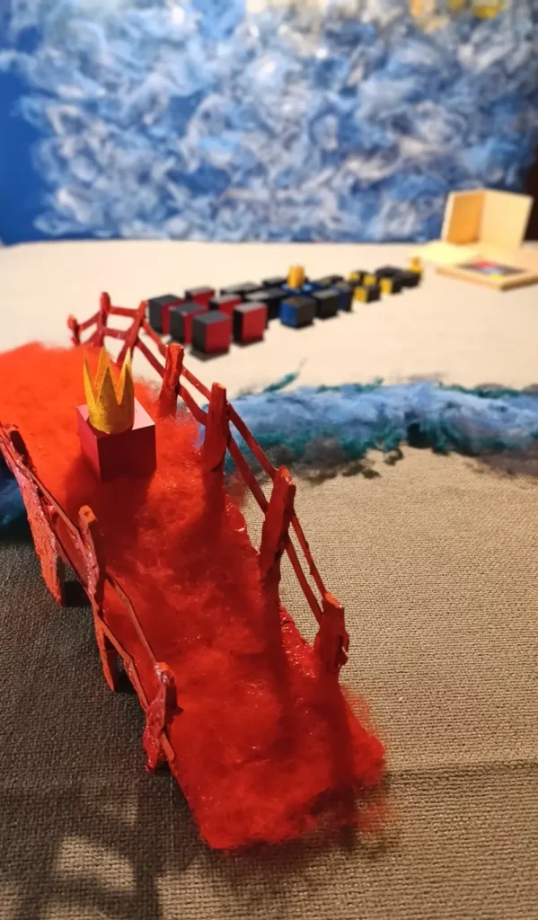 Mentre i re conducono i loro seguaci attraverso il ponte, l’insegnante scambia i blocchi del primo set con quelli corrispondenti del set gerarchico.