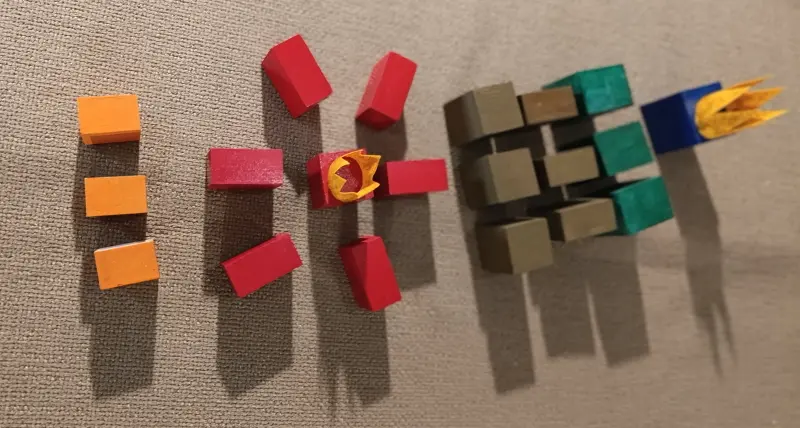 . 6 prismi marroni che diventano anch’essi “Servitori del Nuovo Re Blu” e sono divisi in due gruppi: 3 misurano 4 x 4 x 2 cm; 3 misurano 3 x 3 x 4 cm