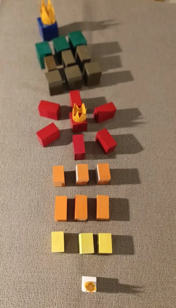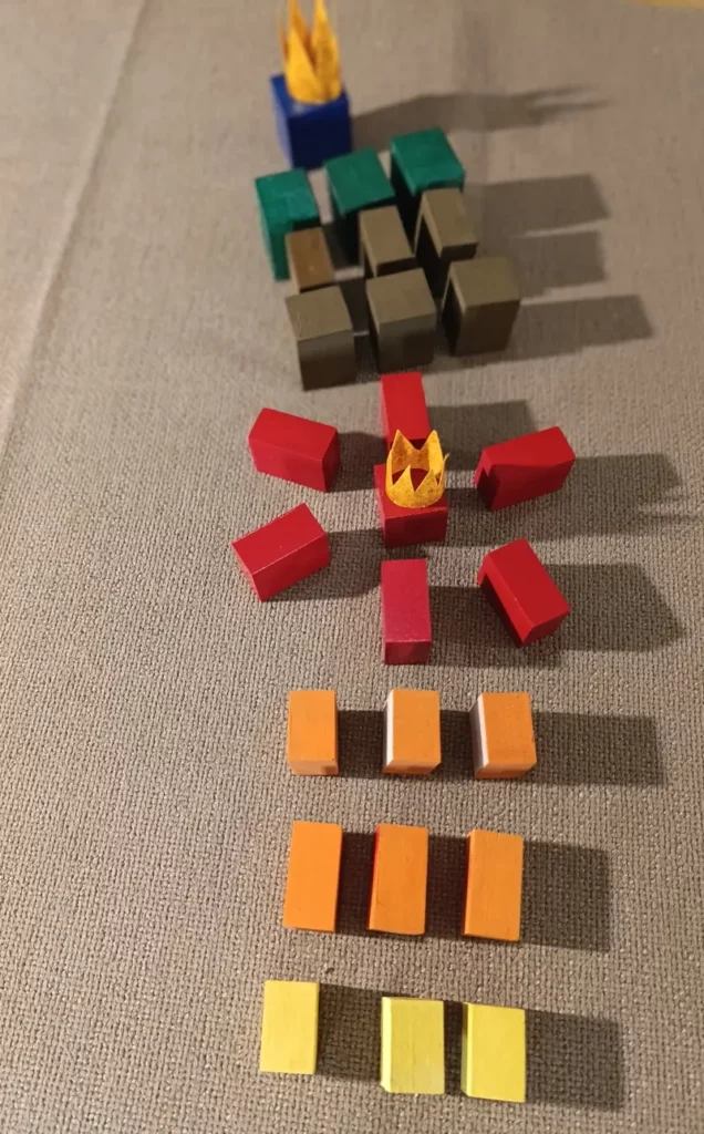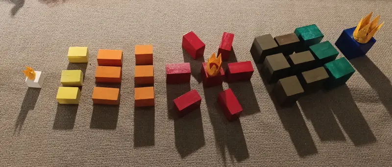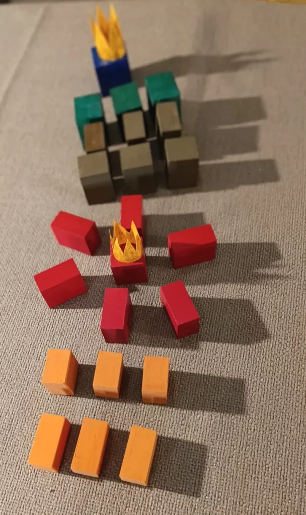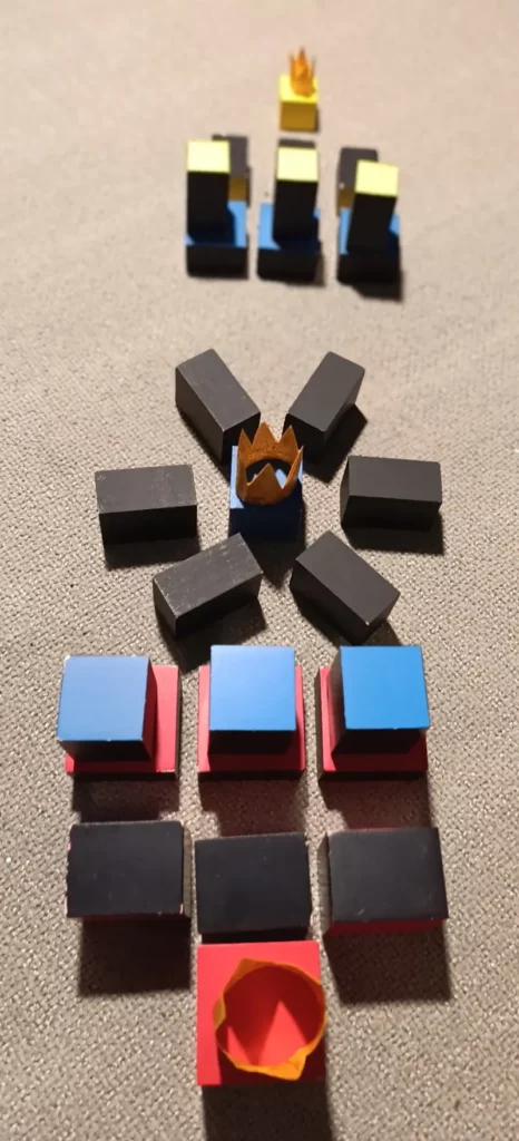 . 6 prismi arancioni che diventano i “Servitori del Re Bianco” e sono divisi in due gruppi: 3 misurano 3 x 3 x 2 cm; 3 misurano 2 x 2 x 4 cm