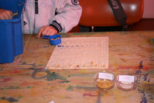 Contiamo cento chicchi di riso, cento pastine, cento perle, utilizzando una tabella creata dal bambino stesso…